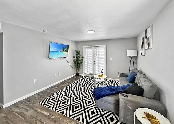 O apartamento Comfy 1Br 1Ba Retreat Near Dallas North Tollway Addison está situado em Addison a 10 minutos a pé de Tom Landry Stadium e disponibiliza comodidades de spa, tais como banho turco a vapor, solário e sala de tratamento. Para os viajantes que vão para Addison com esqui em mente, este apartamento apresenta escola de esqui, aluguer de equipamento de esqui e vendedor de passes de esqui.